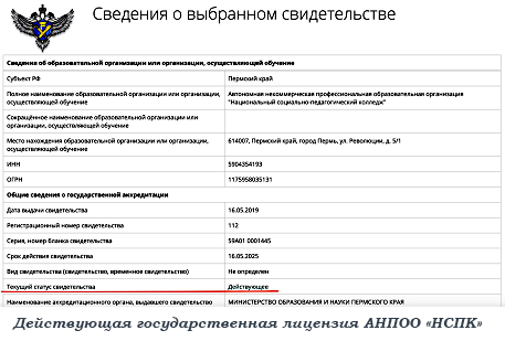 Такие дипломы о среднем профессиональном образовании и о профессиональной переподготовке выдает «Национальный социально-педагогический колледж»